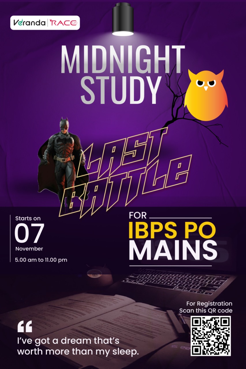 Veranda RACE's Night Shift Programme for IBPS PO (Mains) Exam will start on 7 Nov 2022 (Monday).
